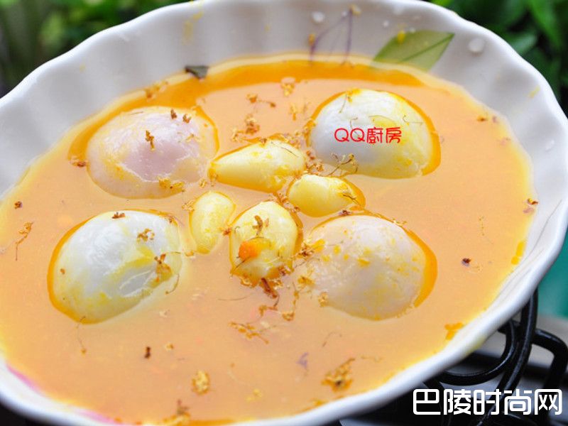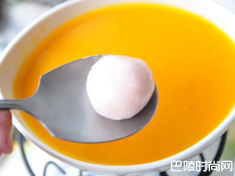 5将煮好的汤圆一颗颗放入南瓜甜汤中