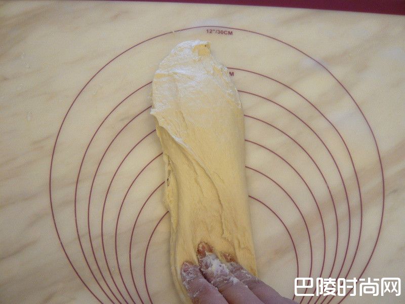 4对折后再抓取面团摔打,重复此动作
