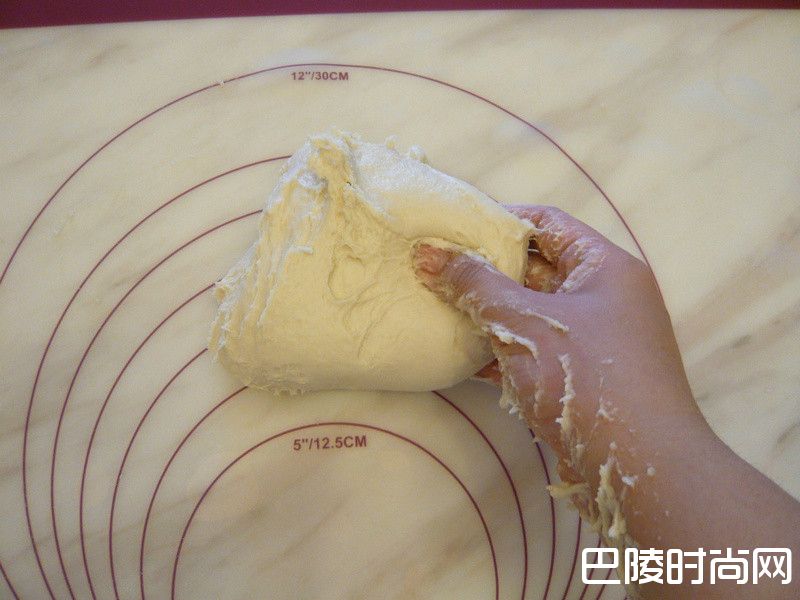 3抓取面团朝桌面摔打出去