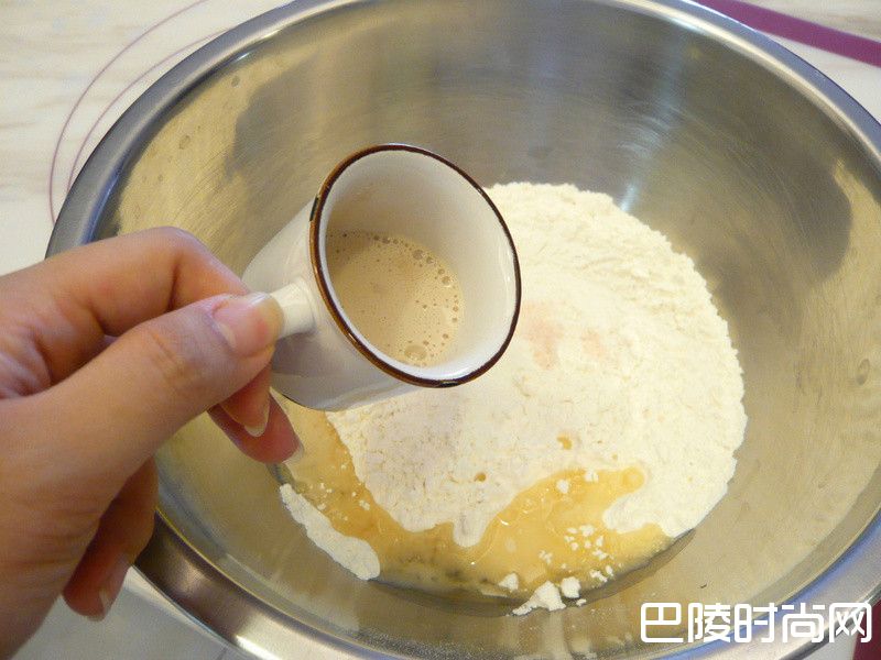 混合均匀加入橄榄油与酵母,冷水慢慢加入搅拌成无粉粒状的面团