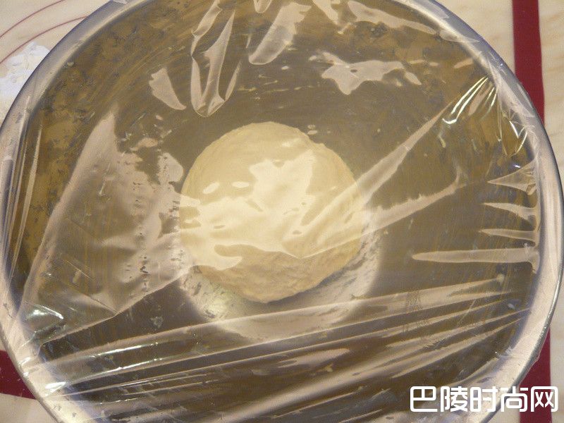 5将面团揉压约5~10分钟成光滑面团。覆蓋保鲜膜放置烤箱内进行发酵1小时。