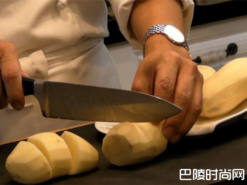 1马铃薯去皮后先切成大块状,或是不用切,直接整颗放到锅子内,并加入大蒜,大蒜不需要切片。蒜头跟把铃薯的比例是1:1,也就是一颗马铃薯就放1颗蒜头,加水下去煮软。在煮的过程中,如果水蒸发,就要适度加水进去。主要是要煮软、但不要煮到烂。煮的时候,不用盖盖子,因为马铃薯煮滚的时候,盖盖子冒泡泡会涨起来。