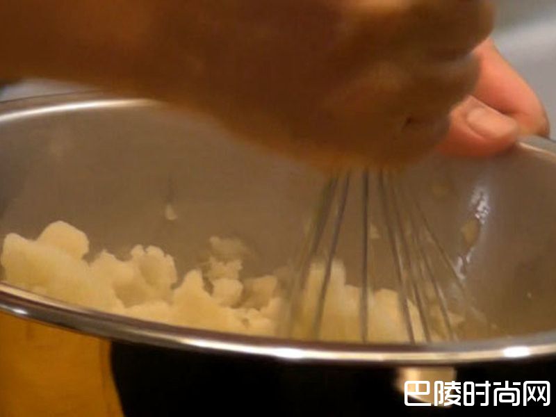 3把马铃薯放到锅子里,用打蛋器打散(不要使用调理机打,因为用调理机打会打出筋)在搅打的过程中,分批把煮滚的牛奶倒入,不要一次倒是为了避免泡太湿变得软烂。每次都打均匀后才倒入。搅拌主要让他不要有颗粒。让他有一定的黏度,但不要调的太稀。黏度搅拌的差不多之后,才再加入胡椒粉,这时候可以尝一下味道,如果不够咸才再多加盐巴。.调好之后不用冰,放在旁边备用。
