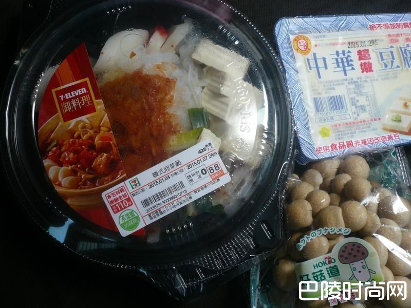 3打开7-ELEVEN韩式泡菜锅包装,将食材倒入锅内加热。
