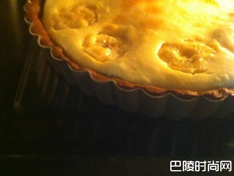 3制作起司馅:将所有起司馅料搅拌均匀,填入烤好的巧克力塔皮(随喜好可摆进焦糖香蕉or新鲜香蕉)。烤160℃/30分钟。