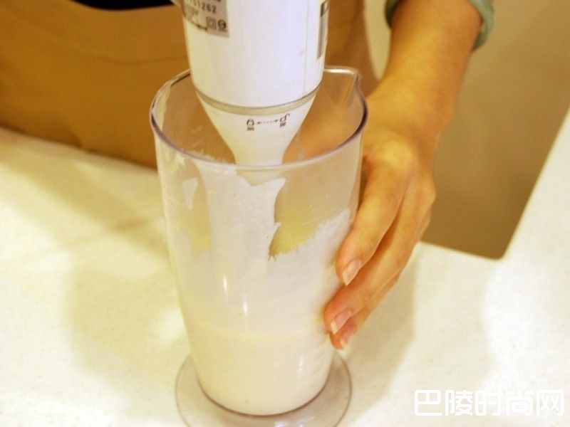 3马铃薯剥皮后,一同与豆腐、50cc的水打成泥状。
