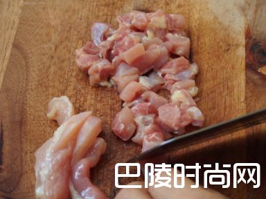 2鸡胸肉去皮,切成小块