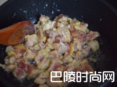 5加入鸡肉炒至呈金黄色