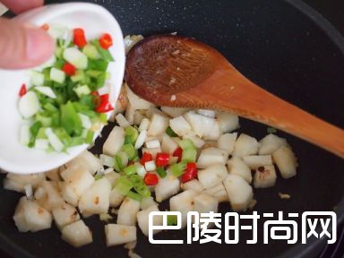 8加入葱和红尖椒