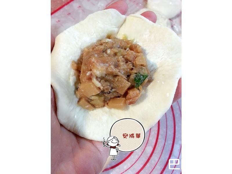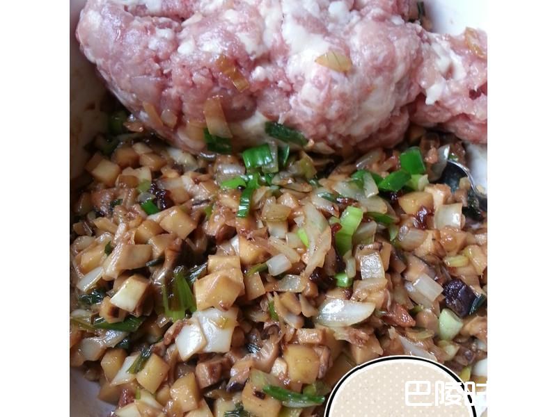 1馅料香菇、虾仁泡软切细,竹荀切小丁状,青葱切细,将全部配料爆香加调味炒熟,[调味视个人喜好口味调整],馅料炒好放凉加入猪肉,拌匀搅拌出些微黏性备用。