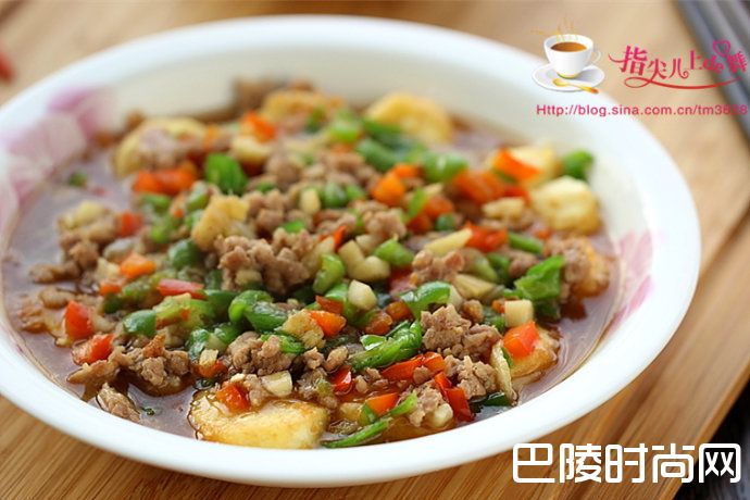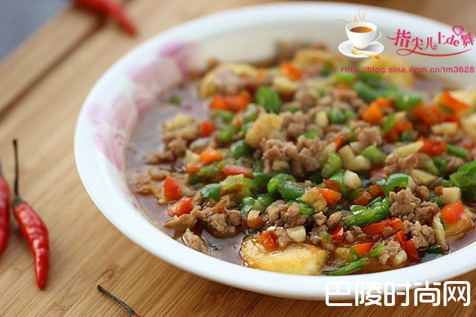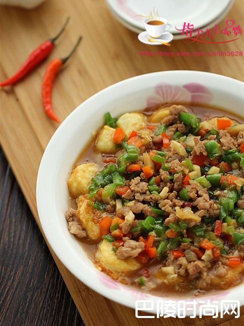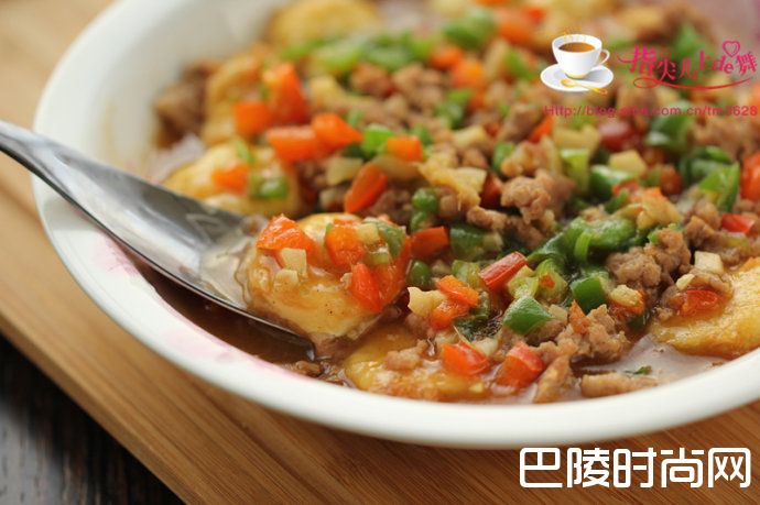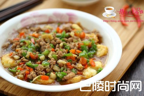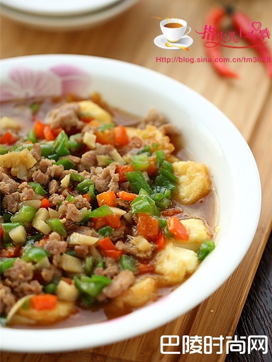 爽滑鲜嫩的“风味日本豆腐”日本豆腐 肉末 青红椒 鸡蛋 姜蒜 生抽 蚝油 料酒 淀粉 胡椒粉 油盐