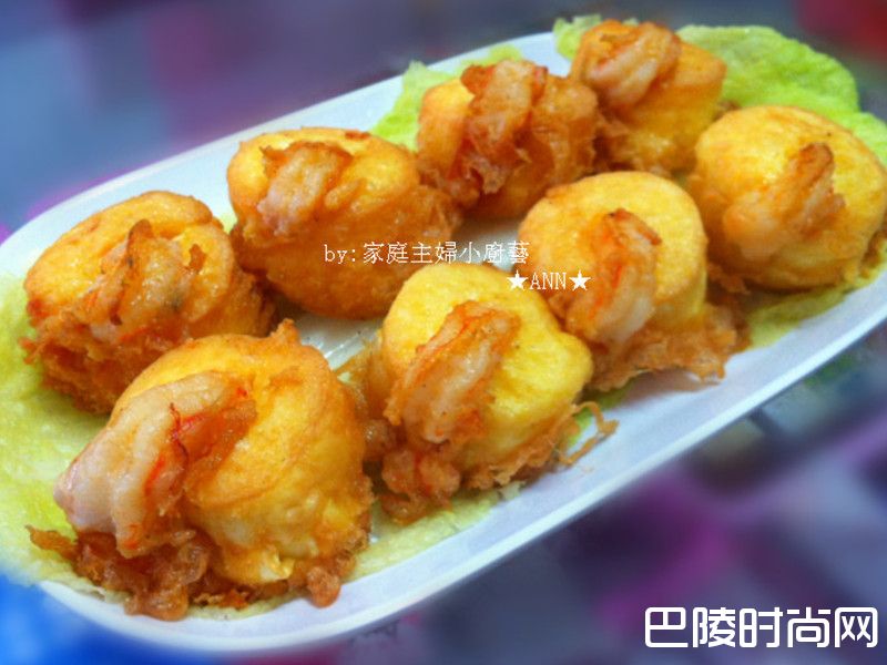 日本豆腐假虾球日本豆腐 3条,中虾 9条,蛋 1粒,薯粉 2汤匙,盐 少许