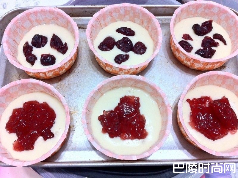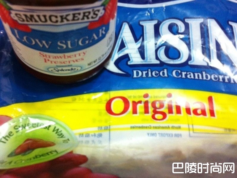 4加入果酱和蔓越莓果干。