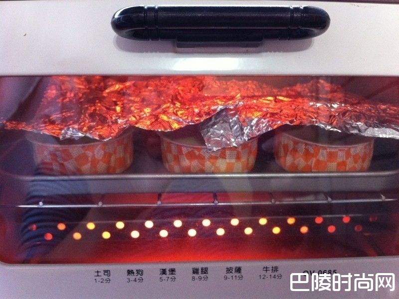 6送进小烤箱,上层铺铝薄纸,全火烤12分钟。