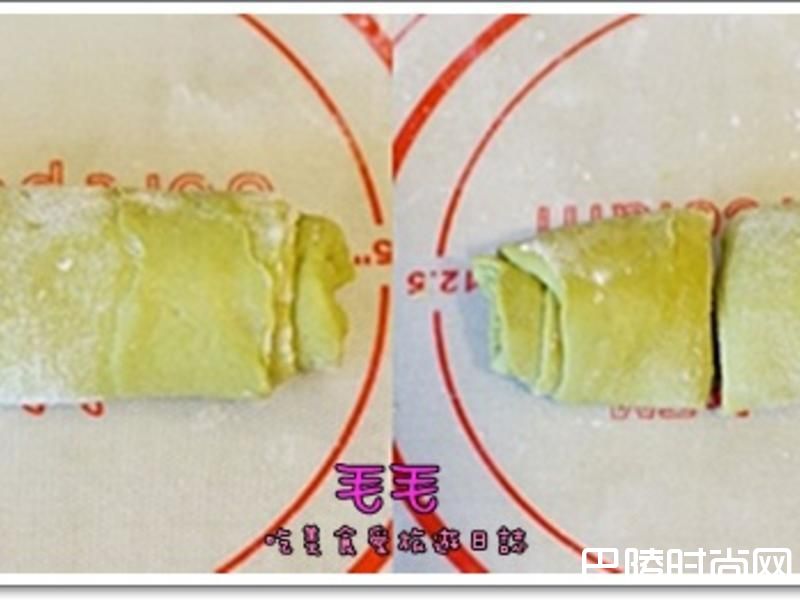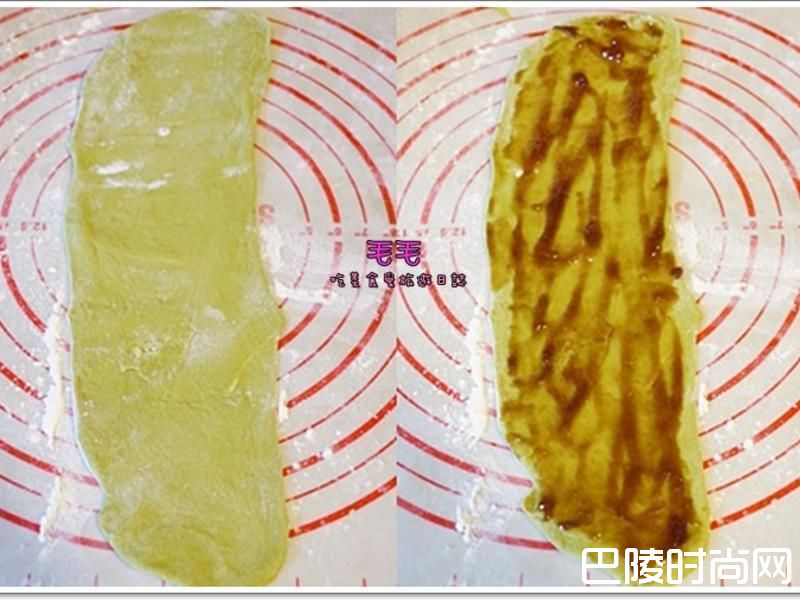 23. 将面团擀成薄薄的长条型4. 涂上覆盆子果酱,薄薄一层就好