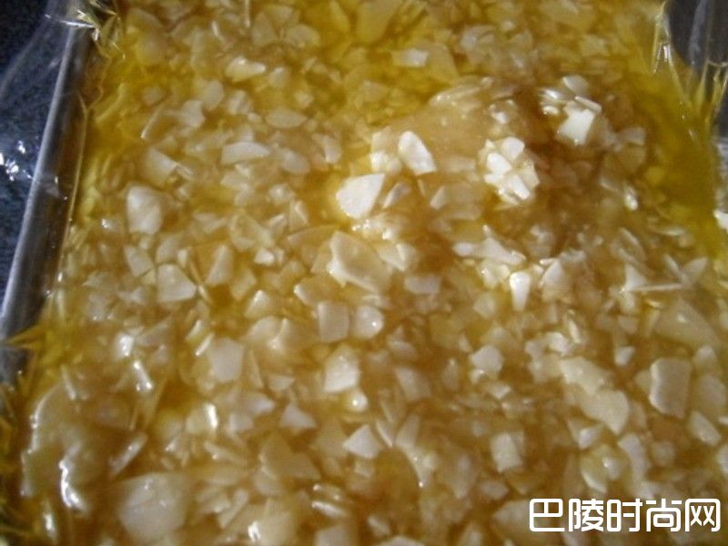 6离火后,拌入杏仁碎片→倒入盘子内(约五公分厚度)