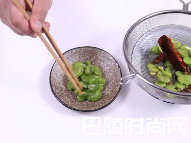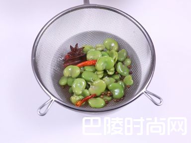 5随后离火,捞出煮好的蚕豆以及锅内其他香料,滗干放凉