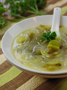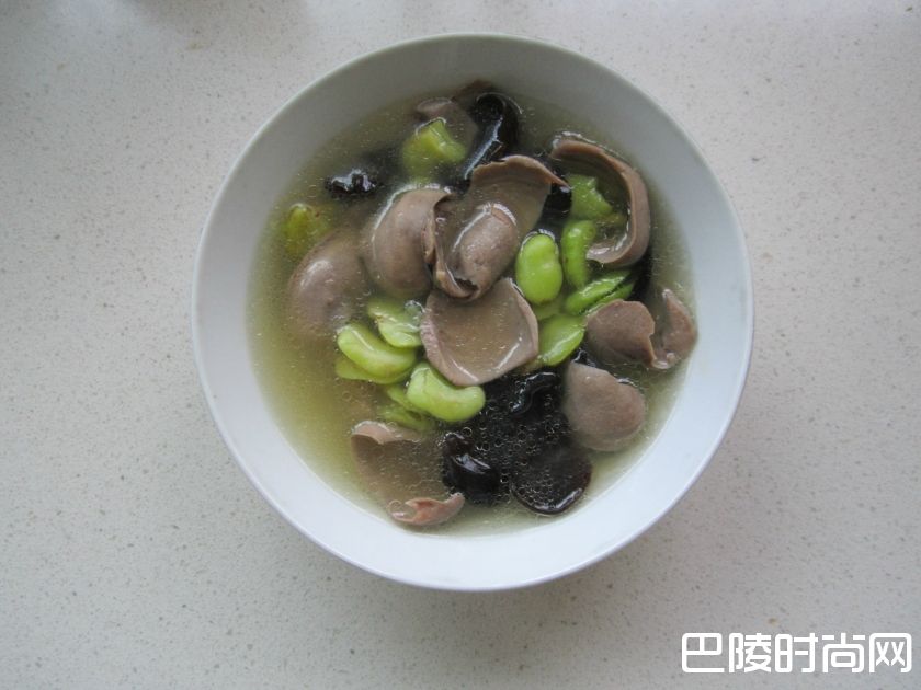 蚕豆米猪腰汤猪腰150克,蚕豆米100克,木耳少许,油、盐、淀粉、料酒、葱姜、鸡精适量。
