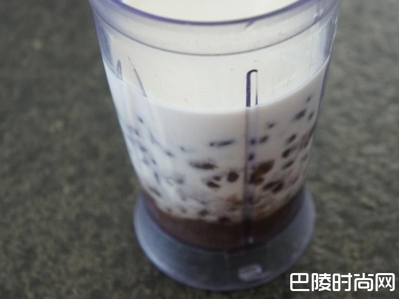 2取200克的红豆粒放入果汁机中,加入牛奶和炼乳,搅打成红豆牛奶
