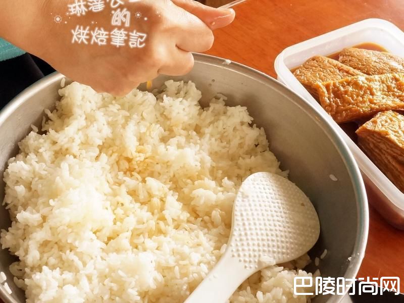 2刚煮好的饭要闷10分钟再打开,饭才会比较Q,然后趁热加入寿司醋,轻轻拌匀,不要用剁的蛤~因为不是要做麻糬