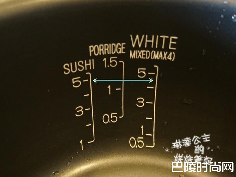1做寿司的饭要比煮的平常的白饭干一点,因为还要拌入寿司醋,这是我的电子锅白饭和寿司饭水线的比较图