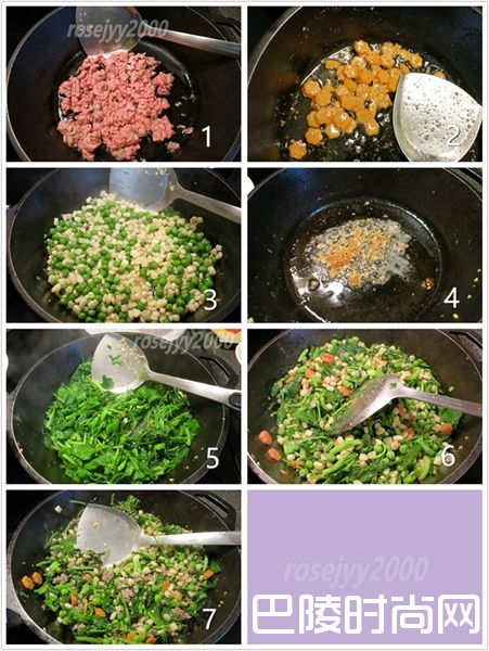 :雪里蕻约1磅 牛肉末1/2磅 青豆1杯 玉米粒1杯 红萝卜粒1/2杯。