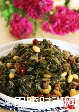 肉沫雪里蕻雪里蕻300克,水发黄豆150克,猪肉馅100克,干辣椒5根,葱少许,白糖少许,生抽少许