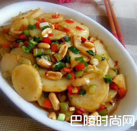 3、炒土豆时的油最好比平时炒菜用油多一匙,油多些土豆不容易散碎。