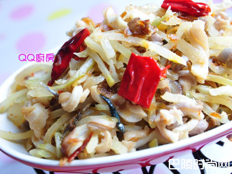 1把榨菜泡水(去盐)肉切丝,配料切好备用