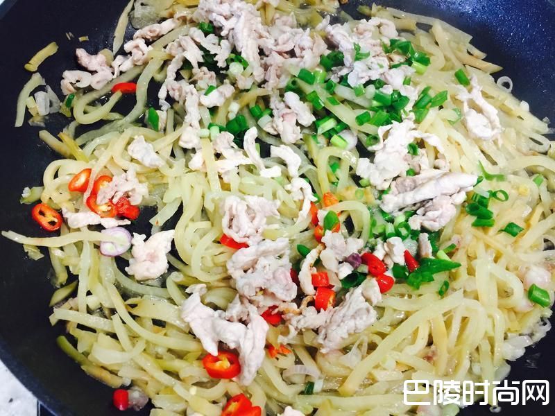 5把肉丝和调味料都放下小火翻炒约1分钟