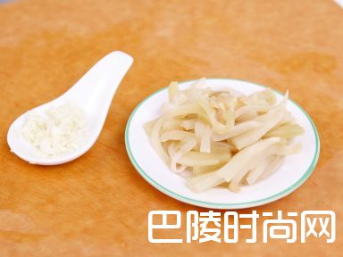 2榨菜切条;蒜切蓉