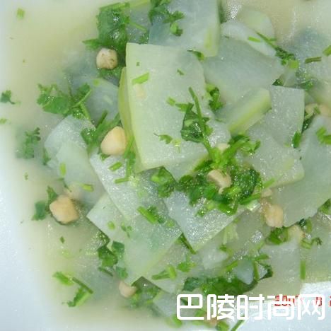 瑶柱冬瓜煮冬瓜500克,干瑶柱30克,盐少许,撒香菜末5克