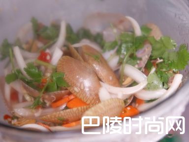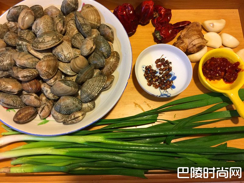 11.提前将原料准备好,花甲用盐水浸泡让其把沙子充分吐出来,然后清洗干净待用