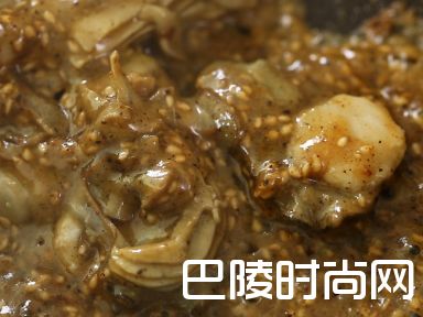 5倒入步骤二烧好的酱汁,翻炒生蚝肉,大火收汁。
