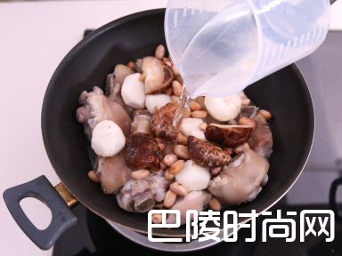 9加入冬菇、马蹄、花生及1升水