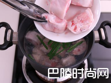 6把水,姜,葱及猪手放入锅子内,煮沸汆水5分钟