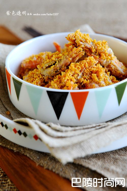 金灿灿的土豪版避风塘北极虾北极虾200g,面包糠50g, 盐1g,糖1g,淀粉50g,蒜末适量