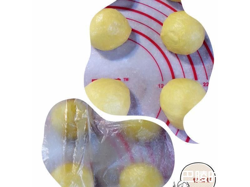 2切割59g一个可分8个,全部滚圆,盖上塑胶袋,休息20分。