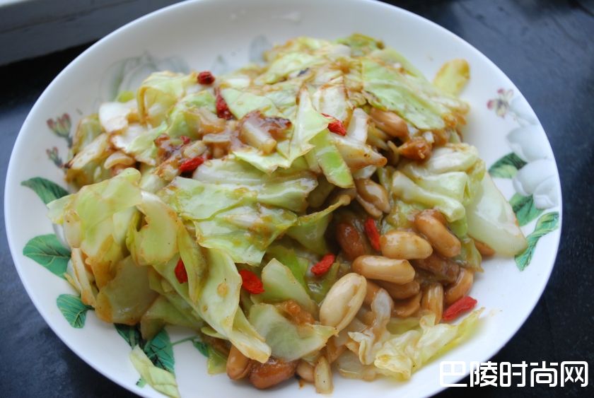 2、爆锅,大火炒熟,同时加枸杞、花生。