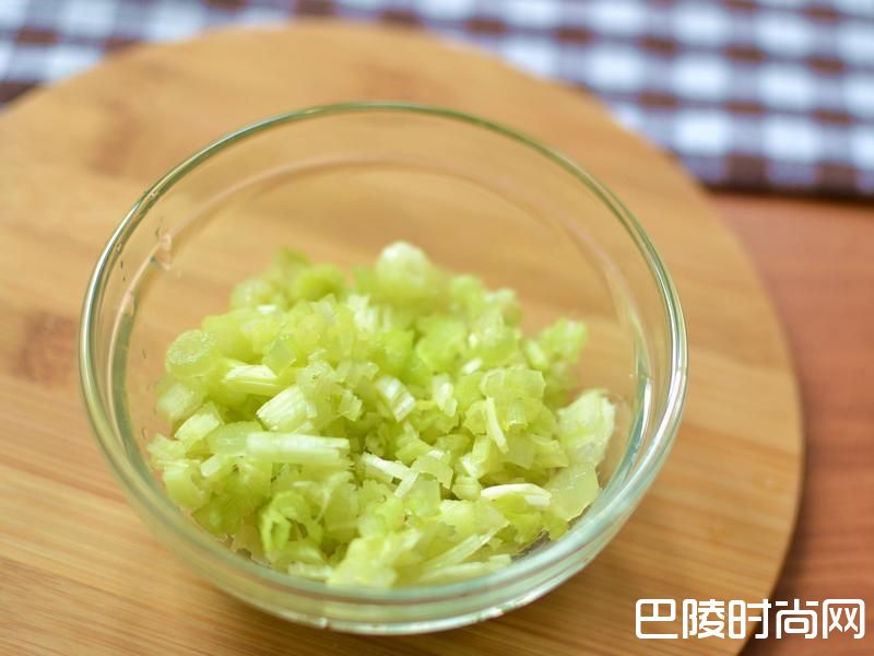 5起锅前加入 [ 调味料] 与芹菜珠。