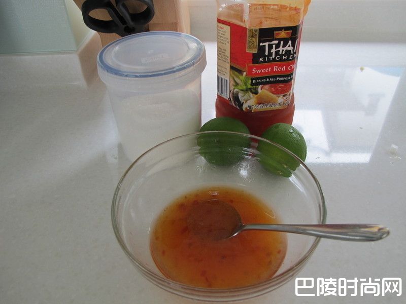 3柠檬汁加入泰式辣酱和砂糖拌匀备用