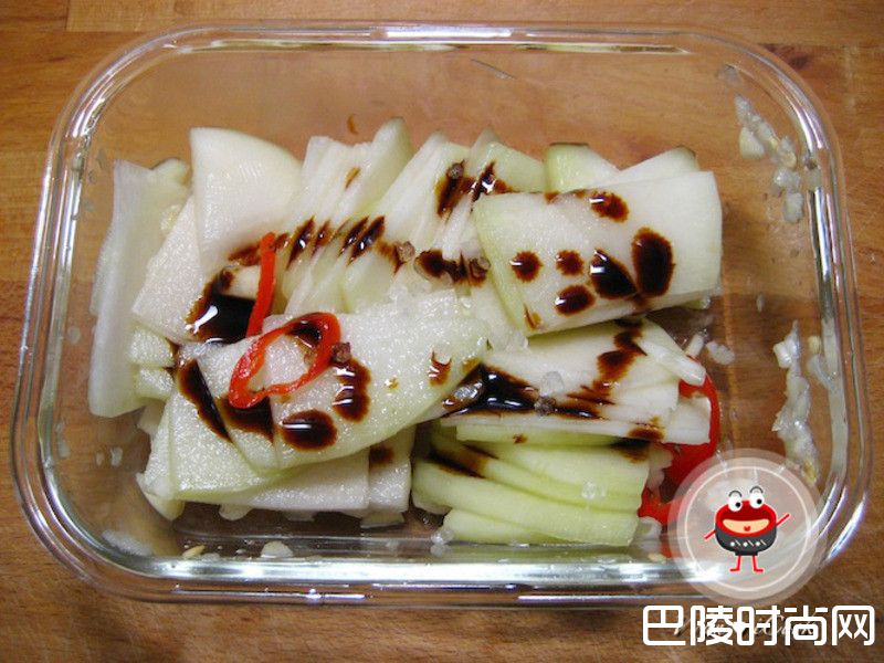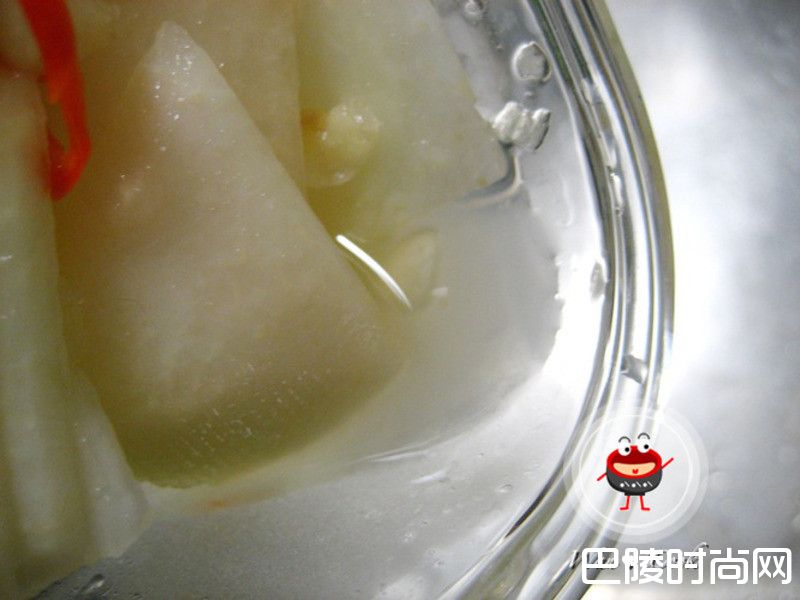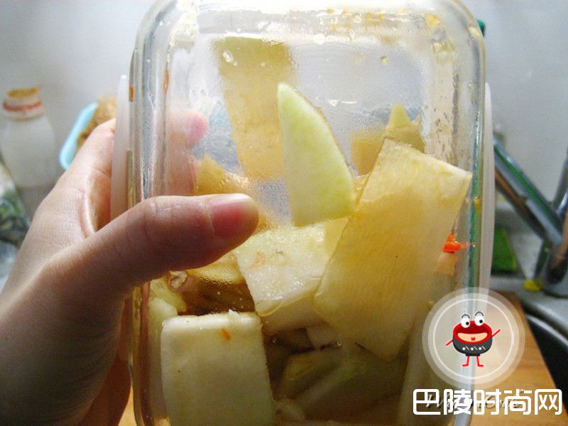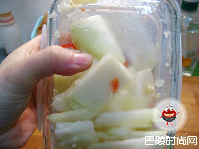 2建议使用,玻璃材质、四边锁扣,密封性好的保鲜盒,易清洗不易残留气味及色渍。因为接下来的动作,要用力上下摇晃保鲜盒;这动作的目的主要是要让大头菜加速软化。摇数下之后将保鲜盒放入冰箱冷藏15分钟。