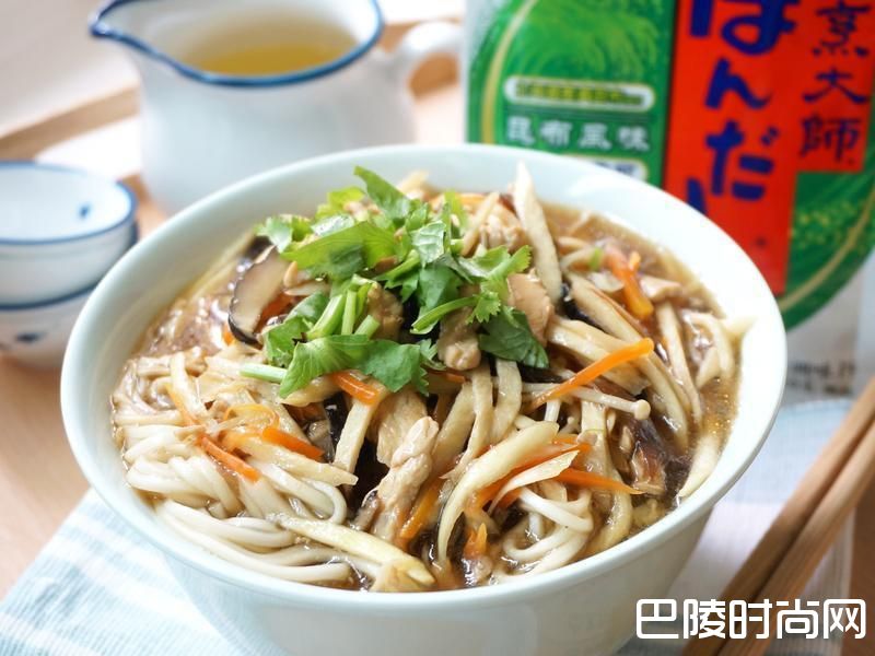 7取适量羹汤倒入煮好的面条中,随意洒点香菜提味就完成囉!!茭白笋和其他各种食材煮出来的汤头超清甜,再用烹大师昆布风味简单调味,混合著乌醋香,仿古早的迷人风味,也是很适合夏日提振食欲的一道简单面品喔:)