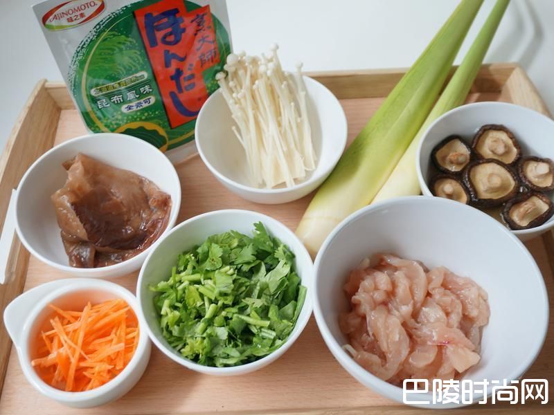 备齐,香菇泡热水备用。