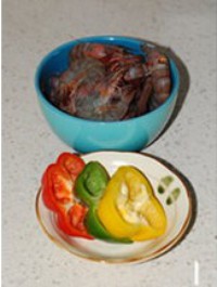 彩椒蒸对虾冰冻对虾,彩椒,蒜,料酒,生抽,香油,黑胡椒,盐,糖
