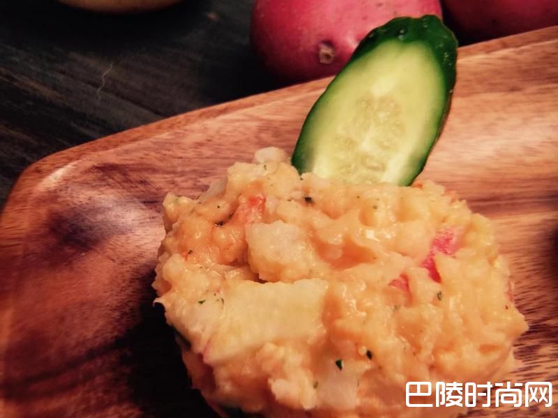 4最后把龙虾沙拉, 苹果丁 & 小黄瓜丁 一并跟马铃薯泥搅拌, 依个人口味加入适量的海盐 & 黑胡椒, 就美味上桌囉