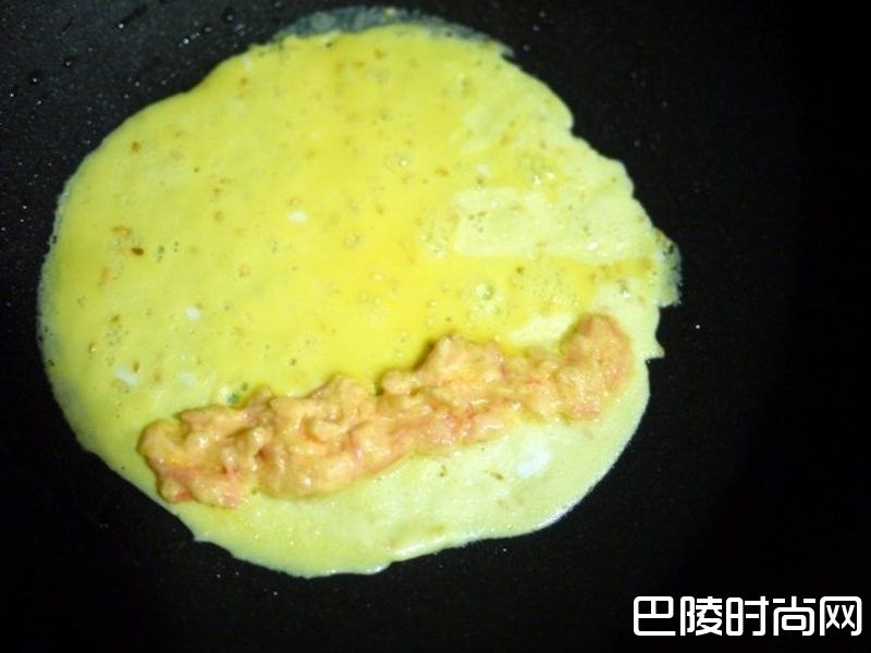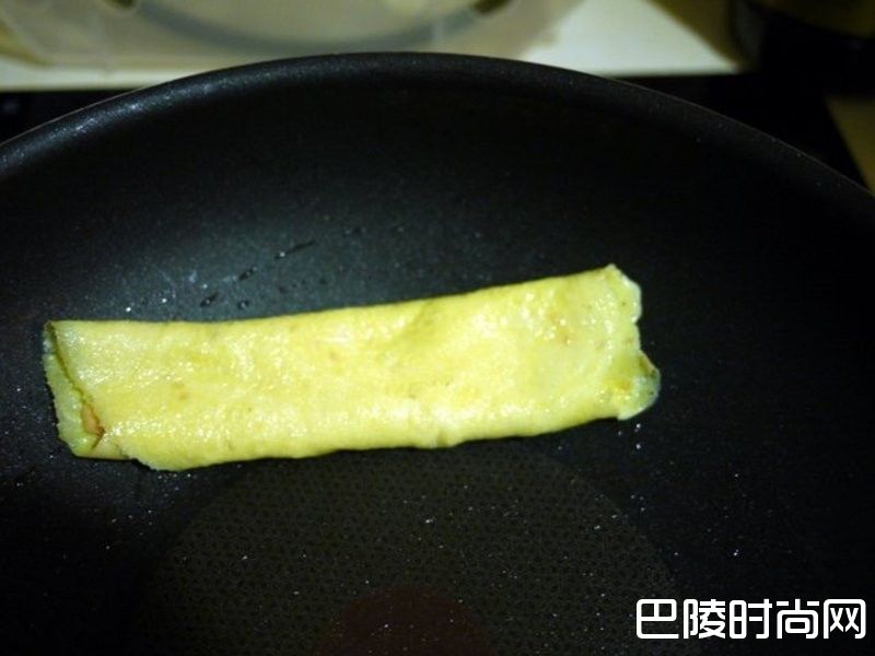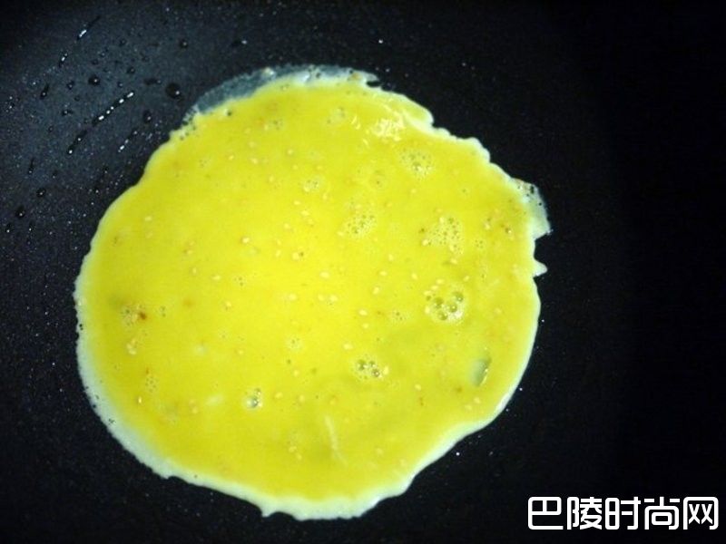 8锅子热到很热后,倒入一层薄蛋液,