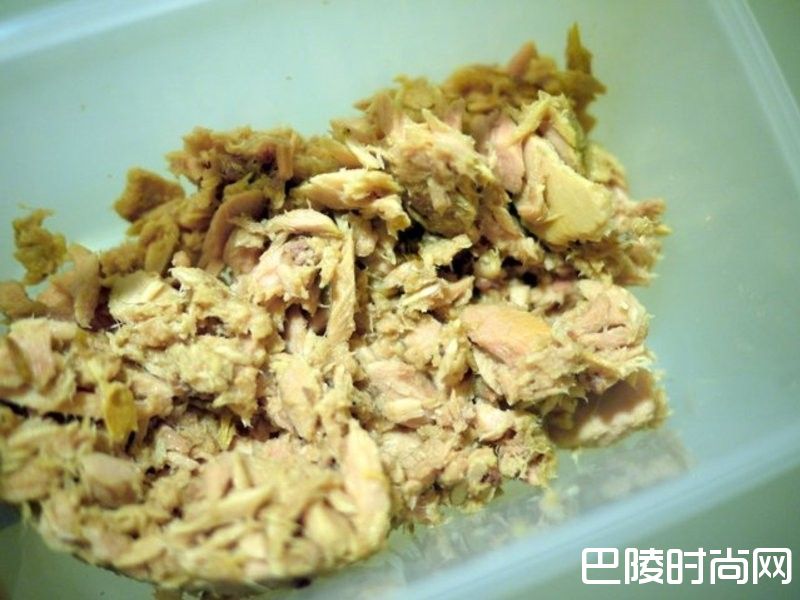 3鲔鱼酱做法:1.先将鲔鱼酱汁逼干后倒入搅拌盒中