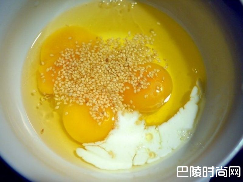 2美生菜2片开水洗净擦干备用蛋液:3颗蛋打入+塩+白芝麻打匀备用