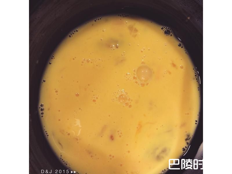 1将蛋、牛奶、盐、味素搅拌均匀